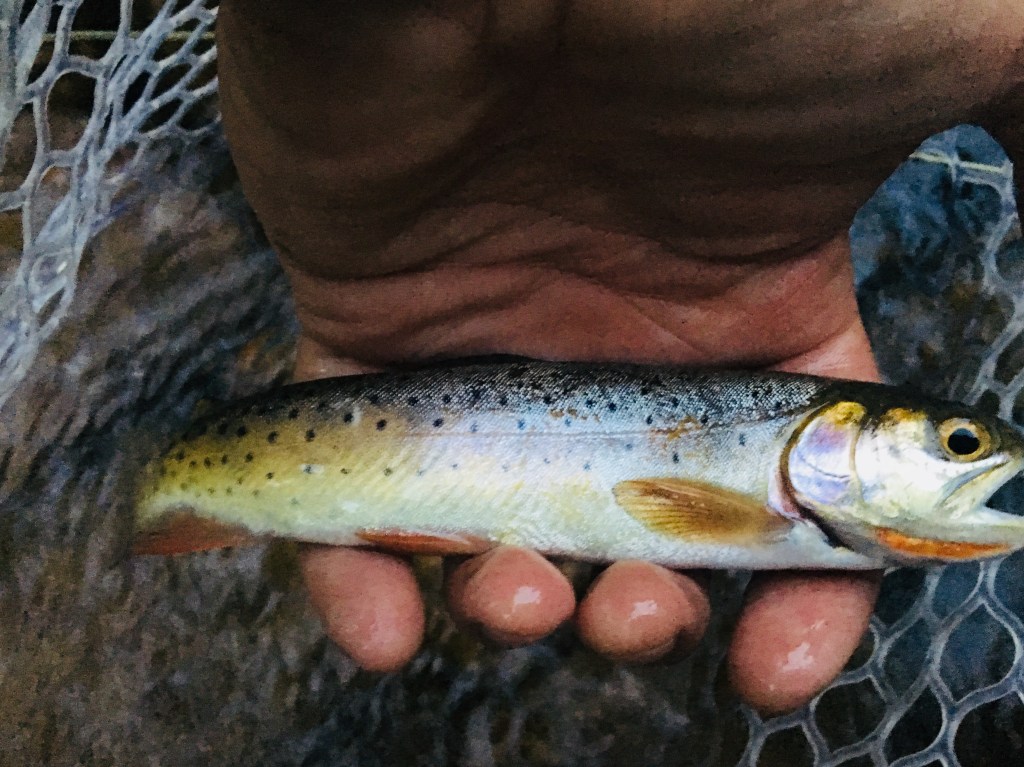 An unmistakable dimple formed on the surface of the water in a small pool at the base of the wall. I guessed all the fish in this feeder creek to the Animas topped out at six inches at best. Brookies and maybe Browns if I was lucky. I was correct in my guessing after I landed a few hand-length blue spotted brook trout. I drifted a mosquito pattern though a bathtub-sized pool and with a take that made my eyes widen, I hooked a healthy 14” brown on 7X and somehow landed it, hands shaking.