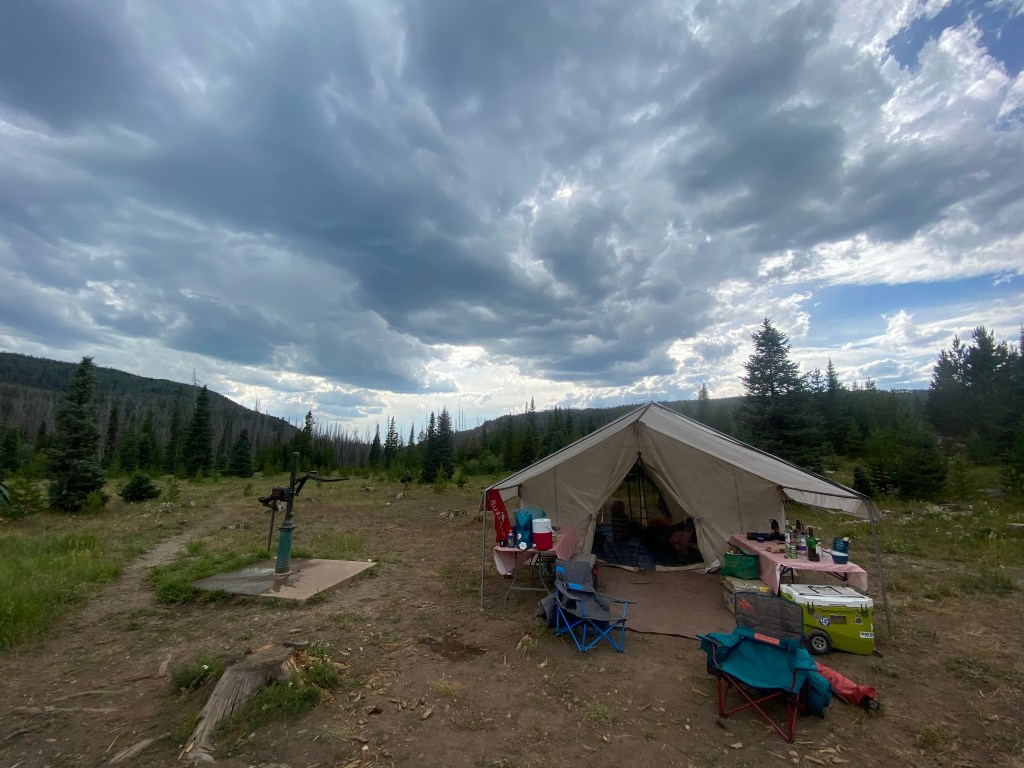 This Group Site is very exposed and when we were there it was hotter than two rats screwing in a wool sock. All the trees in the site have been cleared since the piece of shit pine beetles killed them all. The forest service has planted trees but they are only as tall as a tall adult. Wisely, they built a shade pavilion with picnic tables to beat the heat and the afternoon showers. The water pump is a workout but the water is cold and clean coming out. I wouldn’t say the bathrooms are pleasurable, but they are not disgusting.