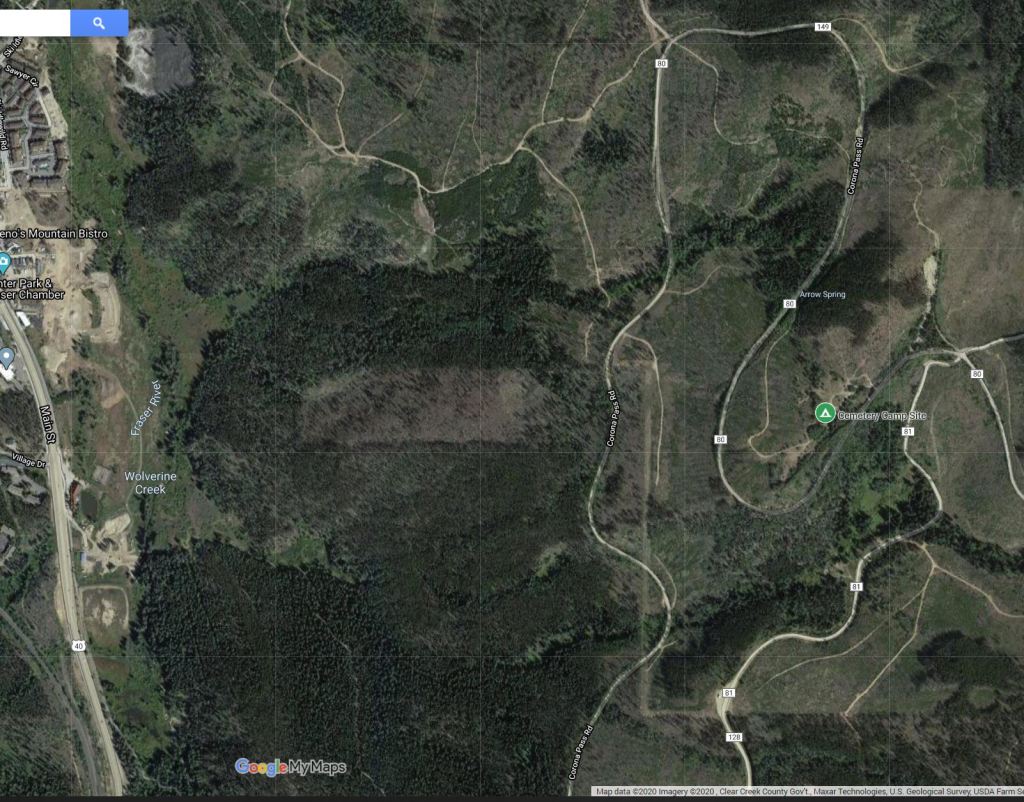 Directions: From Denver, take the exit off I-170 towards Winter Park and Granby on Hwy 40. Drive past the resort and take 80 Corona Pass Road on the right. The road makes a huge U-turn and heads back south then back north. See map below.