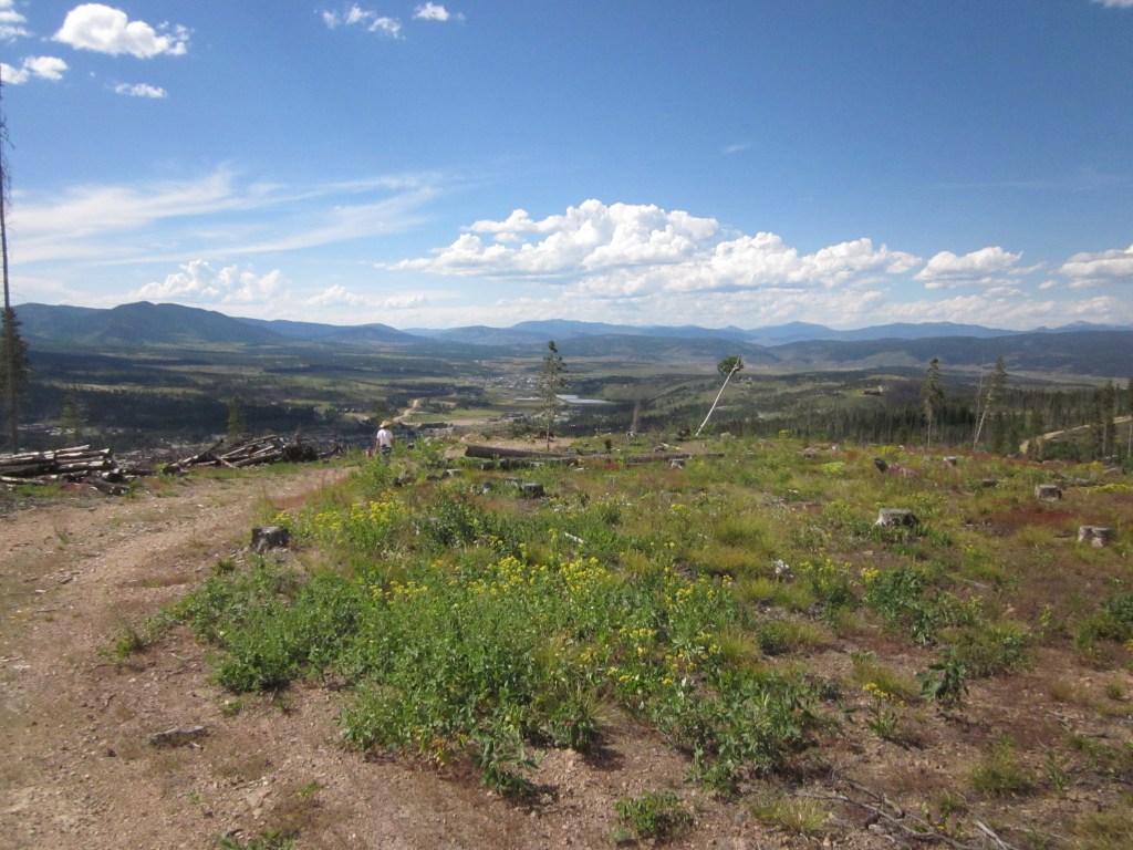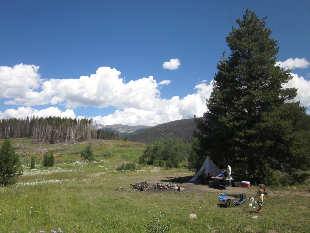 Firewood was easy to gather as the hills across the valley had been destroyed by beetle kill and leveled by the forest service. It was like going to a giant fire wood yard. Everything was already broken and cut into perfect fire logs and dry. We set up camp and created a huge fire that people could probably see from the valley below. The tent was pitched in the only shade under two huge pine trees spared by the beetles.