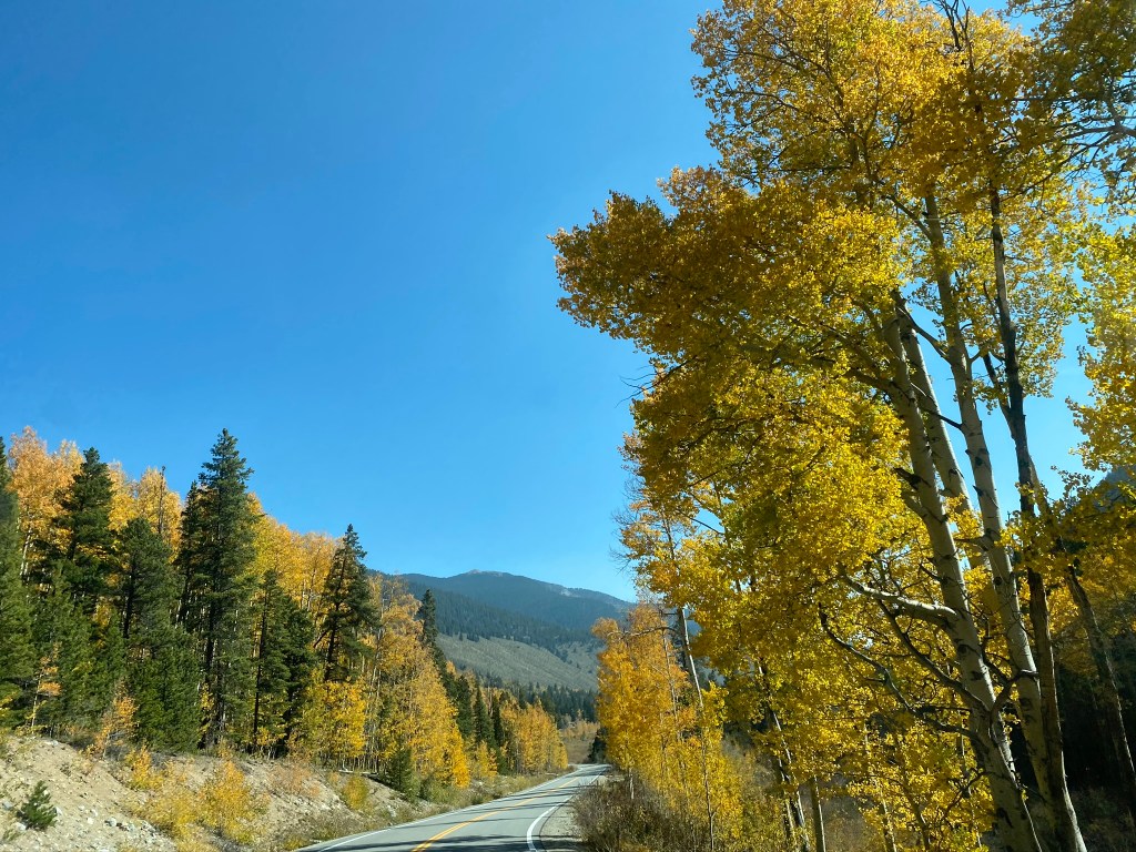 From Buena Vista one must drive many curvy miles up over Cottonwood Pass, which has a brand new road and unparalleled scenery, especially in the fall with the leaves so bright yellow and orange, they are nearly blinding. The road winds up over the Continental Divide for 34 miles to the Taylor Reservoir on the other side. When you reach the top of the pass, stop to look north and south over the towering spine of the continent for as far as you can see in both directions. Not all passes are this high and it summits well above timberline between a couple of the Collegiate Peaks. You better have good brakes and while you’re at it, gear down.