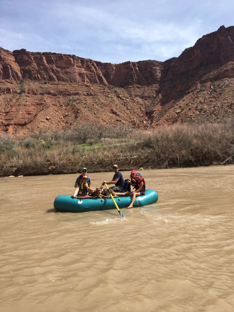What a trip this was going to be! Two new dogs, 5 kids, two rafts, and camping in March. We were going to get this camping season started early in 2019 come hell or high water. The road from Denver to the Utah desert was long and Ned’s (our energetic canine) car legs were shaky from the start. The winding mountain roads were much too much for his young stomach, hence he threw up until he was empty, and followed that up with explosive diarrhea in the back floorboard of the pickup. We went through a package of pee pads and all the paper towels over a few hours of hell on earth. At Glenwood Springs we had to stop to reassess the situation. I was all for tying him to an intersection stop light with a sign that said “Free Dog” but was outvoted.