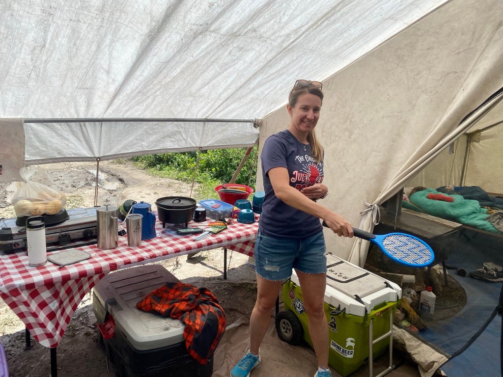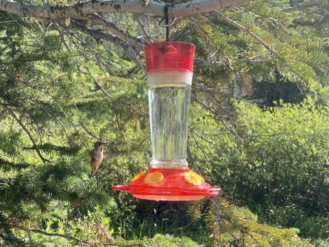 I filled up the hummingbird feeder with homemade sugar water on day one and by day three it was completely empty. Some of the little fighter jets buzzed startlingly close to our heads, some even venturing into the tent for a quick inspection.